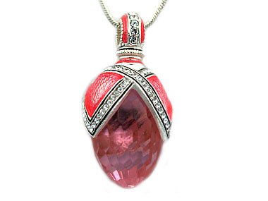This is a nice Faberge style pendant with beauty drape motif. It is made of matching quartz pink faceted, Austrian crystals, black opaque and pretty light pink guilloche enamel. This egg decorated with sterling silver as well. It was delicately crafted by Russian jewelers through elaborate and laborious efforts. Could be an excellent gift for any kind of occasion!
