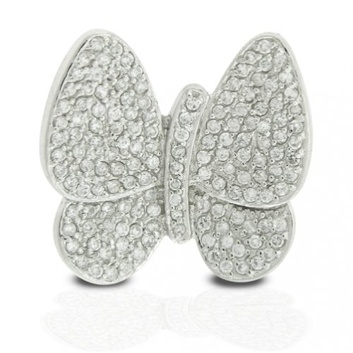 Bling Jewelry Designer Inspired Sterling Silver Pave Diamond Cubic Zirconia Happy Butterfly Pin Feature