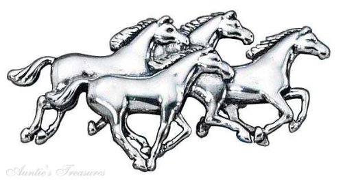 Sterling Silver Four Running Horses Animal Pin Brooch.
