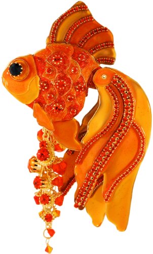 When you feel like a little Fish & Glitz! All our Brooches have Bails and can be worn on Lunch NecklacesTM and Lunch CollarsTM (sold separately) or any Chain as Pendants. 4.75" Long by 2.75" Wide. 24kt Gold finish. Designed by Esme Hecht and Zander Elliott. Made in the USA. © Lunch at The Ritz Earwear, Inc.