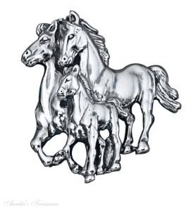 Sterling Silver Mare And Stallion With Foal Horse Animal Pin Brooch.